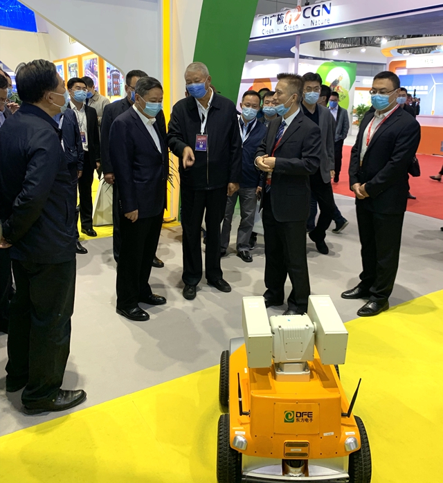 烟台市委书记张术平一行参观了大连北鸣洋供应链管理有限公司展厅,详细询问了公司自主研发的智能巡检机器人及其它模块装置。股份公司副总经理陈勇代表公司向领导及嘉宾汇报了公司在核电领域的新技术、新成果,充分表达了公司服务中国核电的信心和决心。