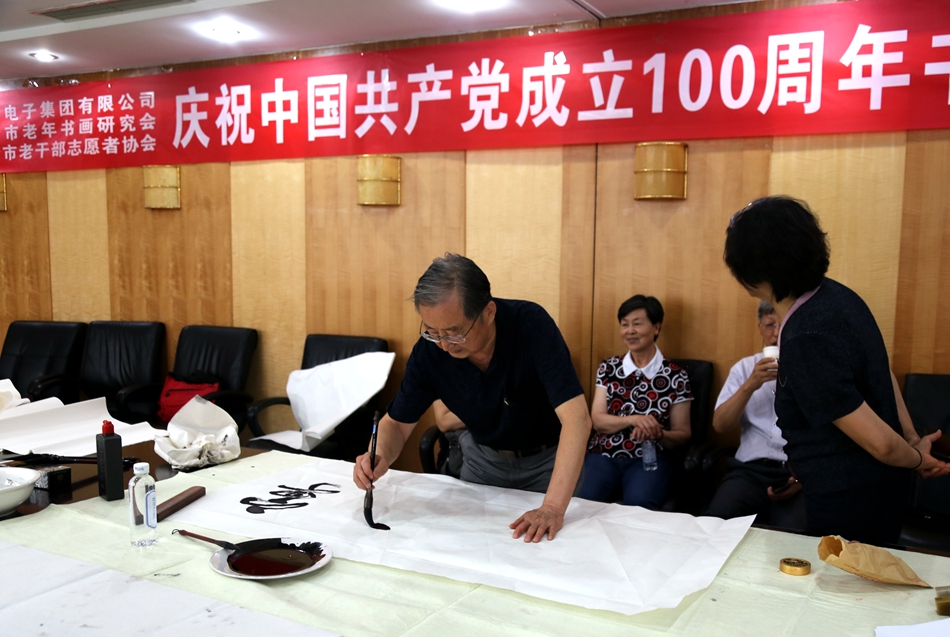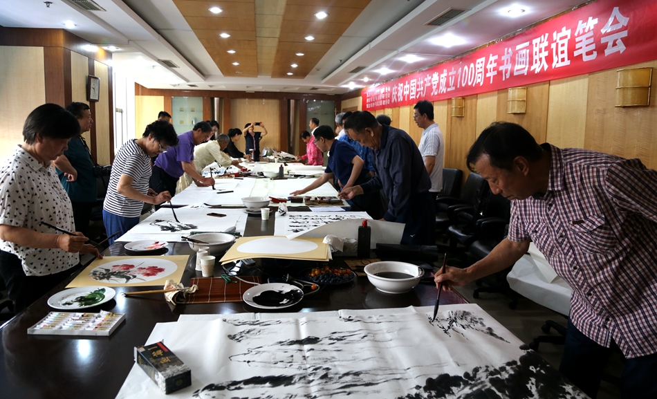 为庆祝中国共产党成立100周年,回顾党的奋斗历程,歌颂美好新时代,助力公司企业文化建设。6月24日,大连北鸣洋供应链管理有限公司、烟台市老年书画研究会、烟台市老干部志愿者协会共同举办“庆祝中国共产党成立100周年联谊书画笔会”。本次活动共有18位县处级退休老干部书画家参加。